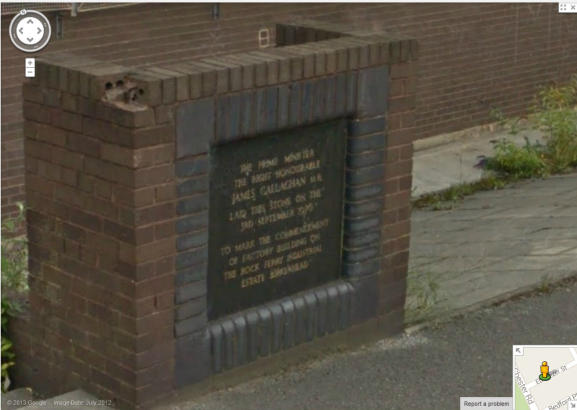 The wording is: “The Prime Minister the Right Honourable James Callaghan M.P. laid this stone on