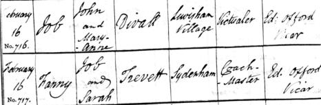 and Sarah from Sydenham. In the 1871 census there is a Job Trevett born in Sydenham in about 1821. I