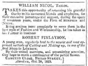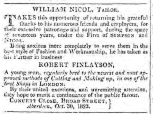 as “Tailor (late Nicol & Finlason)”. According to the directories he