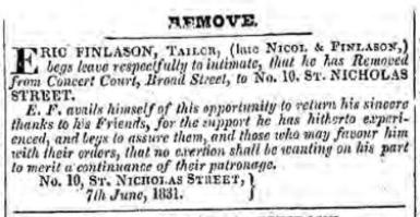 as “late of Nicol & Finlason”. His father John died in 1844, but