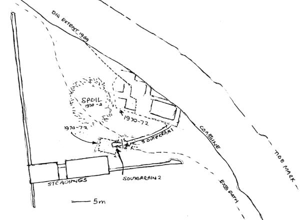 out revealing fully souterrain 2 and the inland termination of souterrain 1.