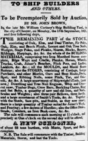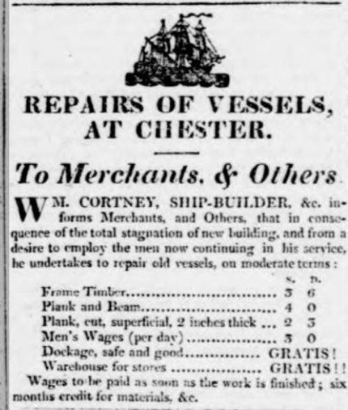 In November 1811 “The Partnership between us the undersigned, as Ship-Builders, at Chester, under