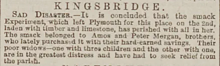 January 1873 both the Loveday and the Kingsbridge arrived in Plymouth with a Morgan as Master, they